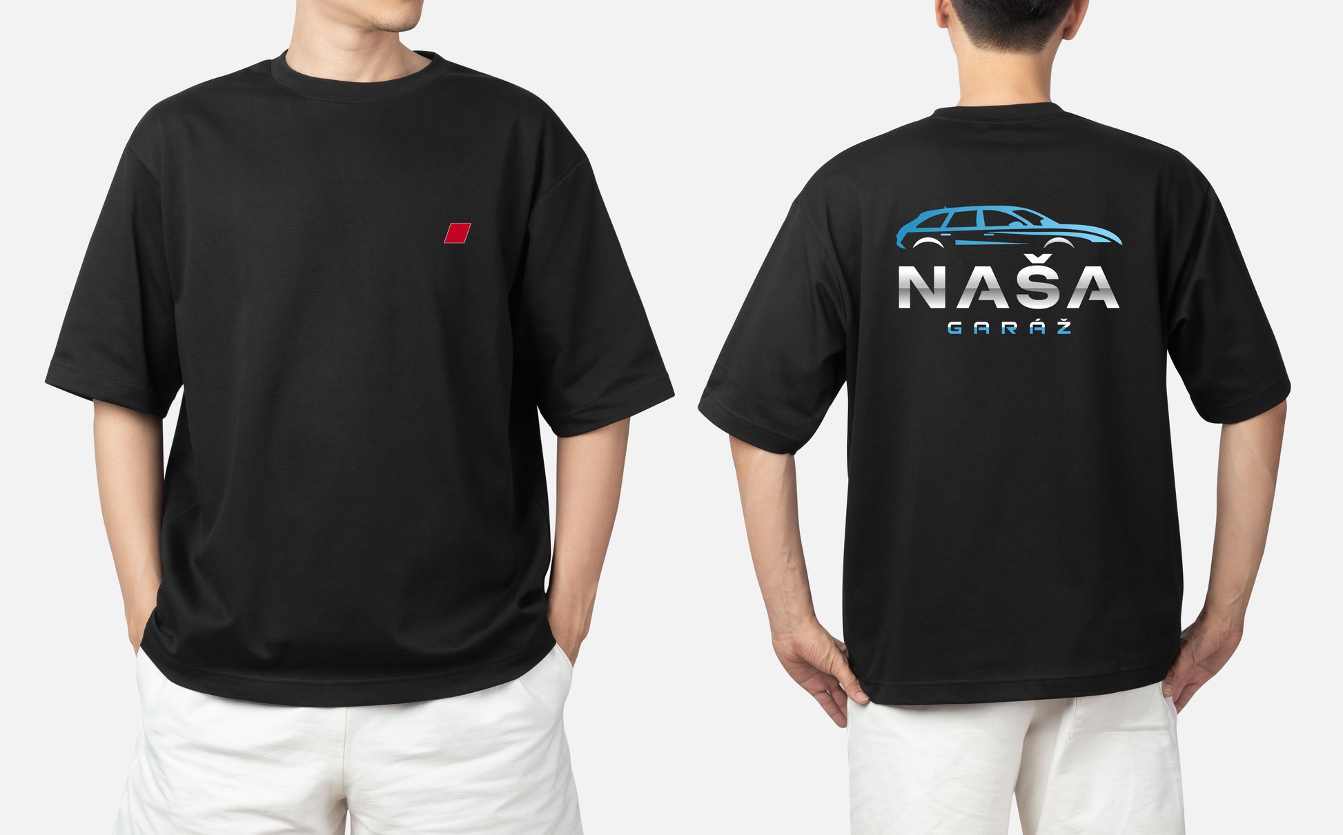 Tričko naša garáž červený obdĺžnik vpredu originálne logo vzadu